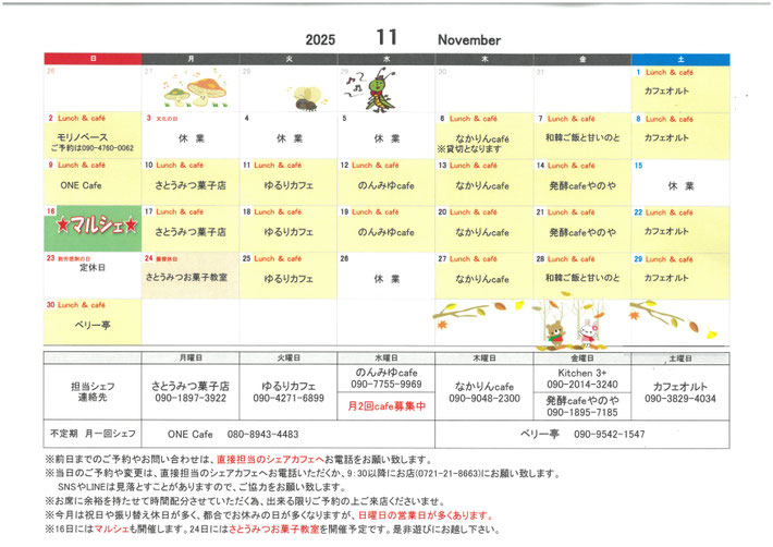 ※ 当日のご予約や変更のご連絡は👉 直接担当のシェアカフェにお電話いただくか、